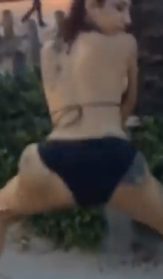 beach...and OMG!...it's frightening to watch. Her butt is...I can't